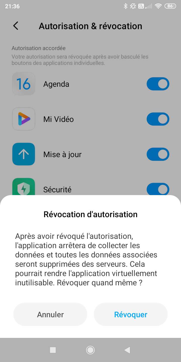 Une fenêtre va apparaitre « Révocation d’autorisation », cliquer sur « Révoquer »